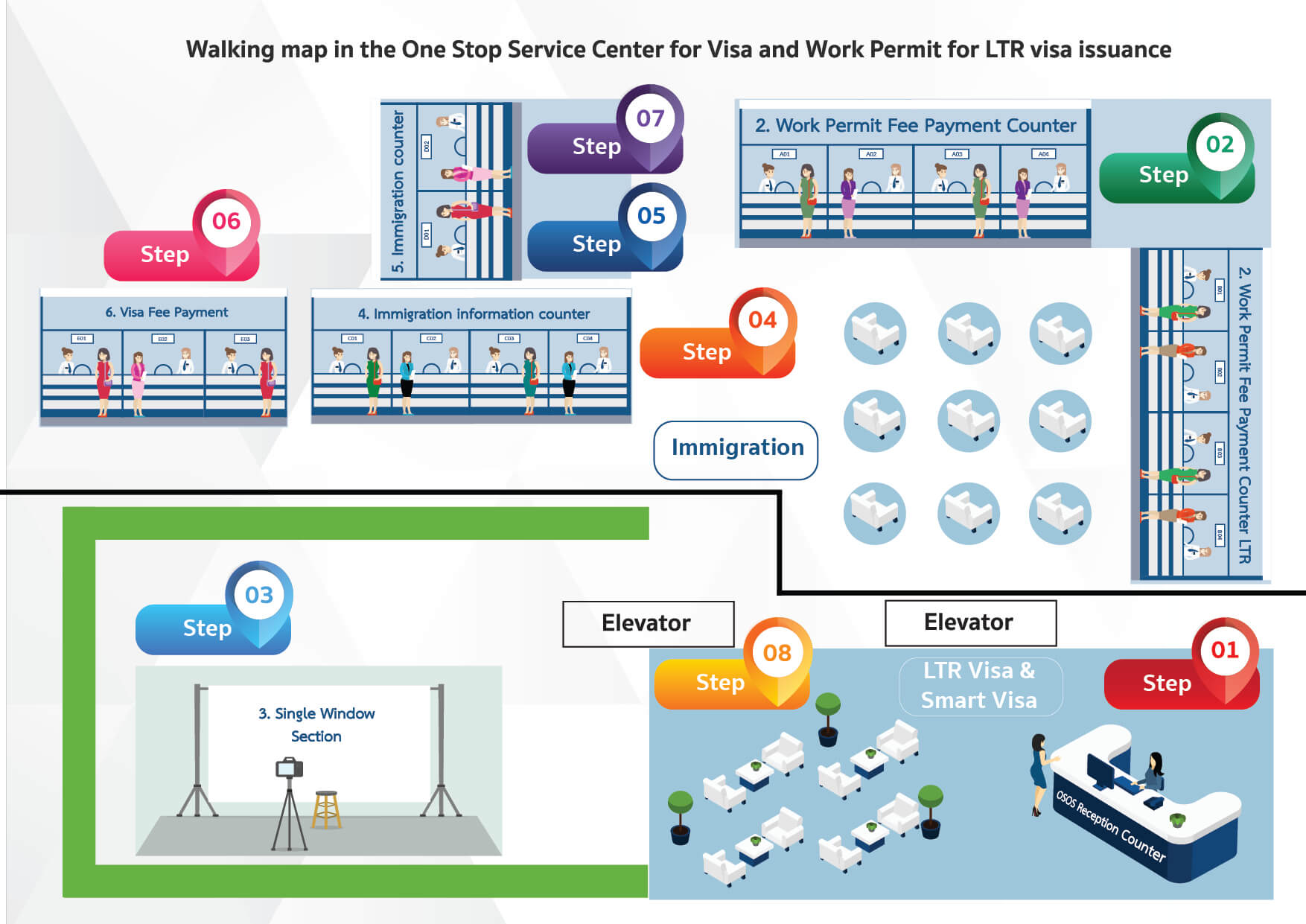 Please submit the documents to Immigration’s counter 11 for LTR Visa issuance and wait in the immigration area until your name is called.